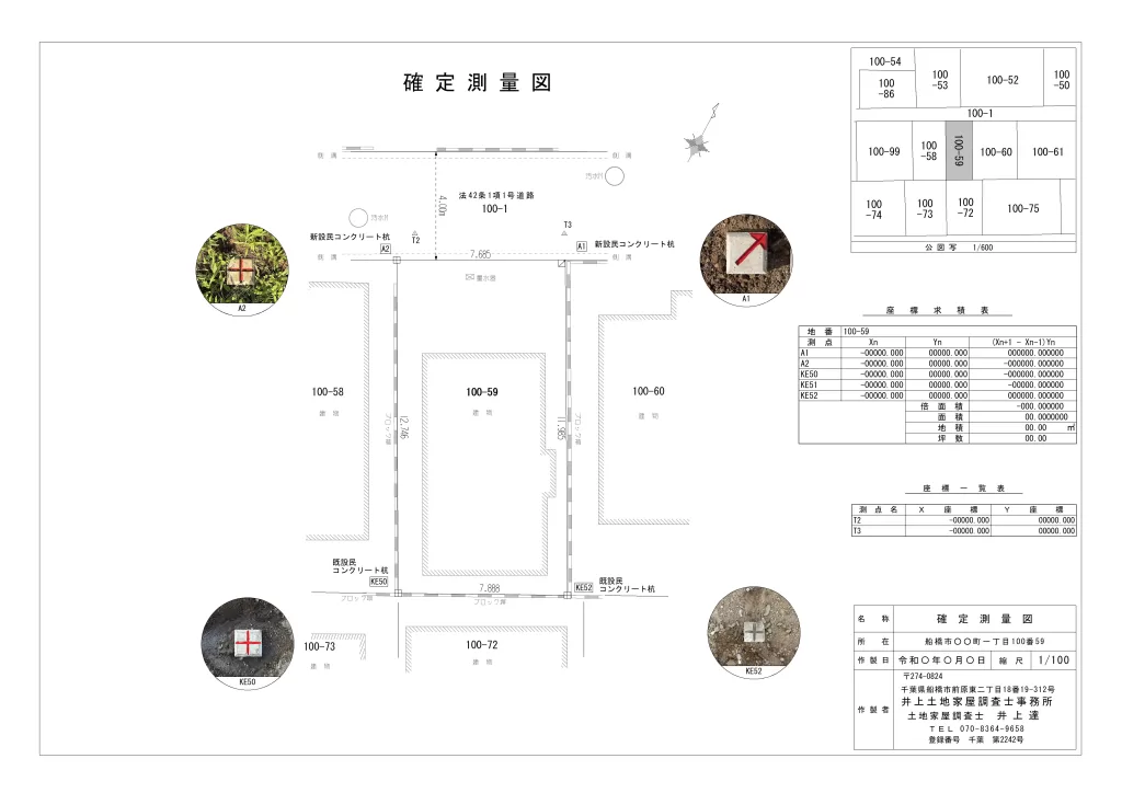 その境界を法的に明確にし、隣接する土地の所有者や官公署(市区町村など)と立会い・確認を行った上で、正確な測量を行った図面を 「確定測量図」 といいます。